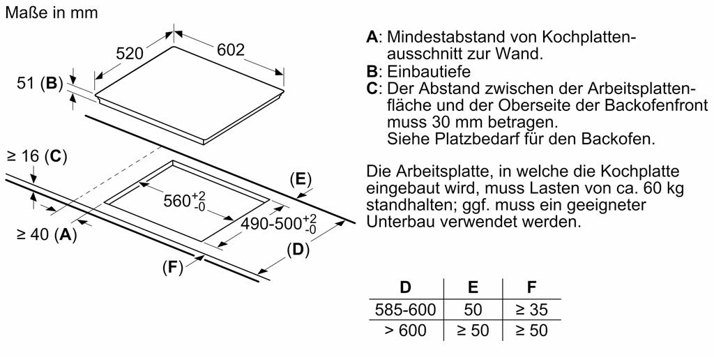 - Kích thước mặt bếp (CxRxS) (mm): 51 x 602 x 520