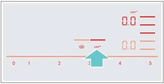 Cài đặt nhiệt xuất hiện trên màn hình cho vùng nấu thấp hơn.