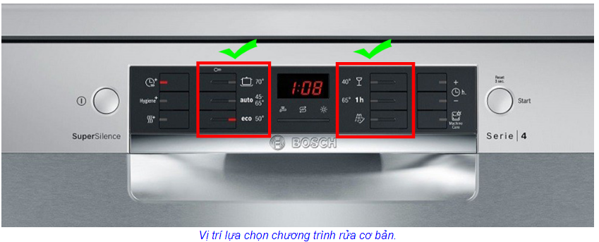 (4) Extra Dry – Sấy tăng cường: Nhiệt độ tăng lên trong bước rửa cuối cùng, và giai đoạn sấy kéo dài, đảm bảo khô hoàn toàn các chi tiết nhỏ thậm chí đồ nhựa. Năng lượng tiêu thụ sẽ tăng nhẹ.