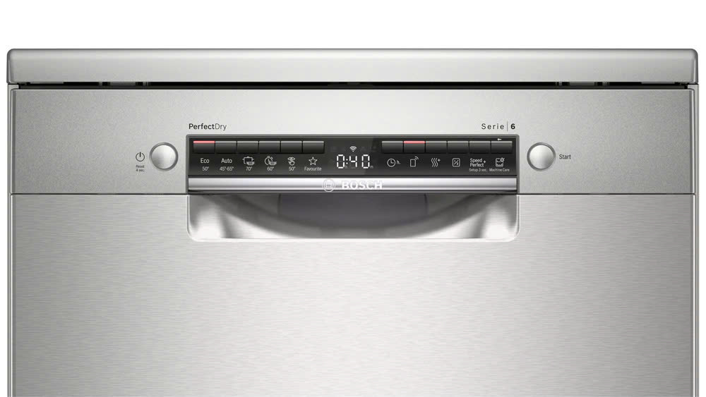 SMS6TCI00E được trang bị bảng điều khiển với các nút bấm vật lý chỉ với một nhấn. Đồng thời còn có màn hình LED hiển thị rõ thời gian và tình trạng của máy rửa chén.