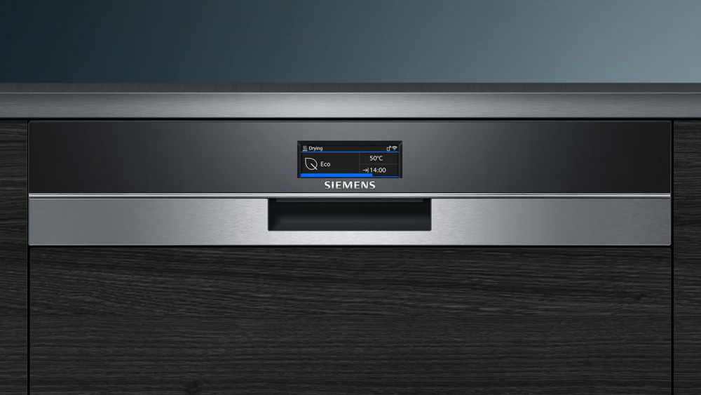 Siemen SN57YS01CE iQ700 làm bằng chất liệu thép không gỉ cao cấp bền đẹp, Máy rửa bát được thiết kế mở ra phía trước tiện lợi sắp xếp bát đũa xoong nồi vào.