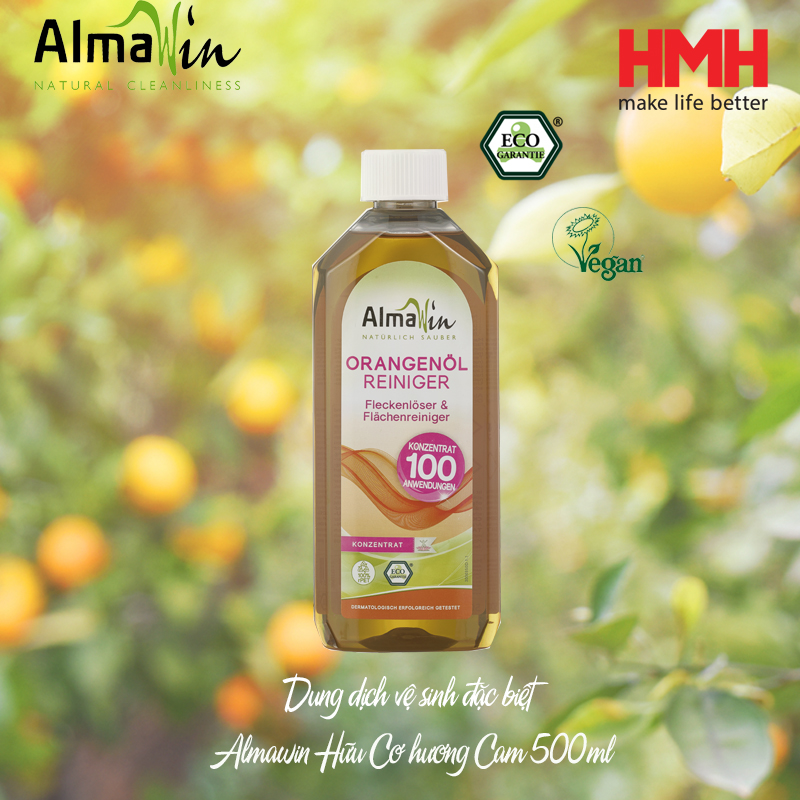 Sản phẩm dung dịch vệ sinh đặc biệt Almawin hữu cơ hương cam 500ml có chiết xuất từ thiên nhiên. Thuộc nhóm sản phẩm vệ sinh đặc biệt, công dụng chính của sản phẩm gồm: