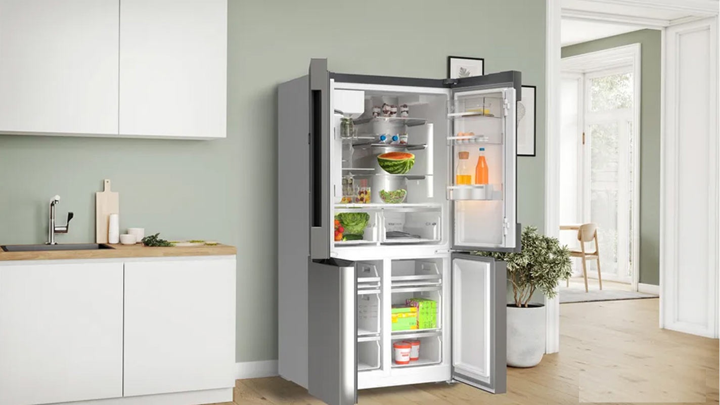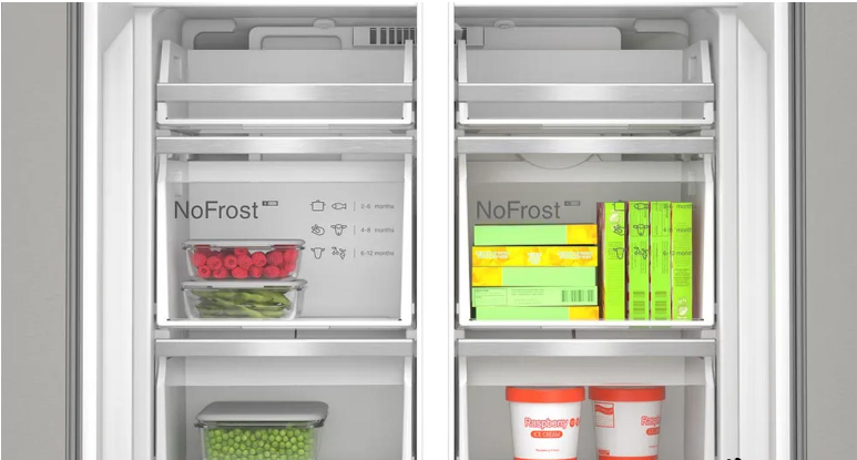 Công nghệ NoFrost của tủ lạnh 4 cánh Bosch KFD96APEA Serie 6 ngăn hơi ẩm tích tụ trong thực phẩm bằng cách hút ẩm vào một thiết bị đặc biệt và tự động rã đông khi cần. Nhờ vậy, thực phẩm được bảo quản mà không hình thành màng đá, giúp tiết kiệm thời gian và chi phí cho việc rã đông.