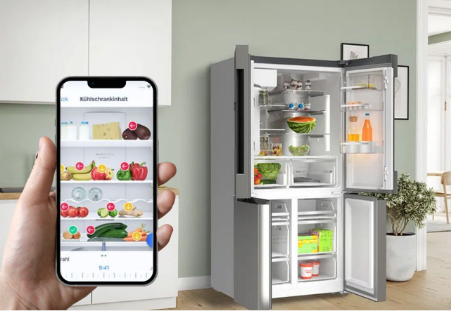 Ứng dụng Home Connect trên tủ lạnh 4 cánh Bosch KFD96APEA cho phép điều khiển và giám sát tủ lạnh từ xa qua điện thoại hoặc máy tính bảng. Chỉ cần kết nối Internet, bạn có thể dễ dàng kiểm soát nhiệt độ, điều chỉnh ánh sáng và nhận thông báo khi cửa tủ mở, mang lại sự an tâm và tiện lợi tối đa.