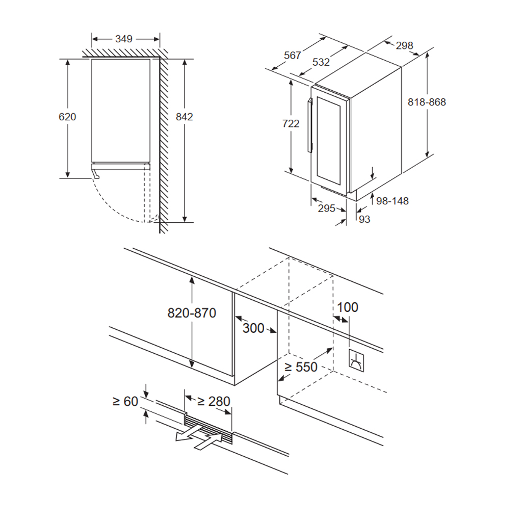 Công nghệ giảm thiểu tiếng ồn hoạt động tiên tiến và cách nhiệt hoàn hảo. Giảm rung lắc đến mức tối thiểu đảm bảo lưu trữ rượu tối ưu